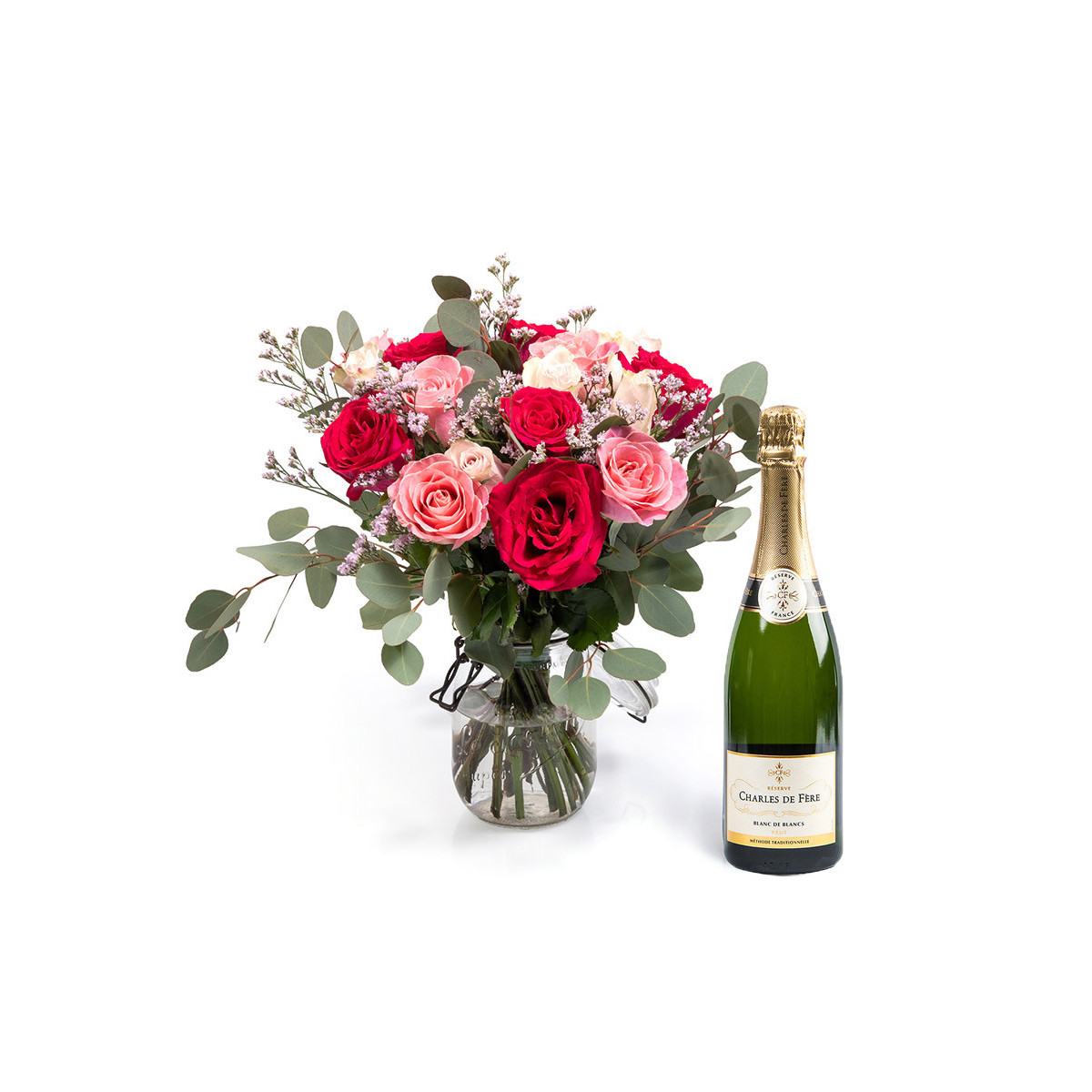 Un cadeau délicat et pétillant à offrir avec un joli bouquet de fleurs fraîches et des bulles raffinées !